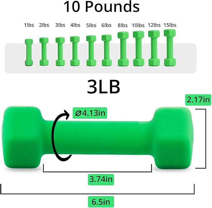 Portzon Weights Dumbbells 10 Colors Options Compatible with Set of 2 Neoprene Dumbbells Set,1-15 LB, Anti-Slip, Anti-roll, Hex Shape for Shoulder,Neck, and Hand Training for Seniors
