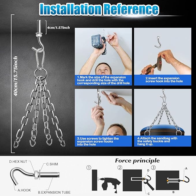 - Boxing Bag Holder Included: Boxing training equipment comes with a durable boxing bag holder that can be mounted on the ceiling and different wall brackets, durable and can support the weight of kids heavy bags