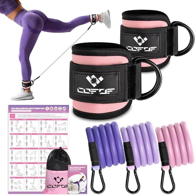 - [RESISTANCE BAND GRAVITY FOR WOMEN] Our ankle band cuffs are designed with 3 different levels of tension to accommodate various fitness levels. Whether it's the light pink band (10lbs), the light purple band (20lbs),or the dark purple band (30 lbs), all resistance bands can be used individually or any combination, you can always find the one that's 'just right' for you.Our ankle resistance bands are your one-way ticket to bootyliciousness.