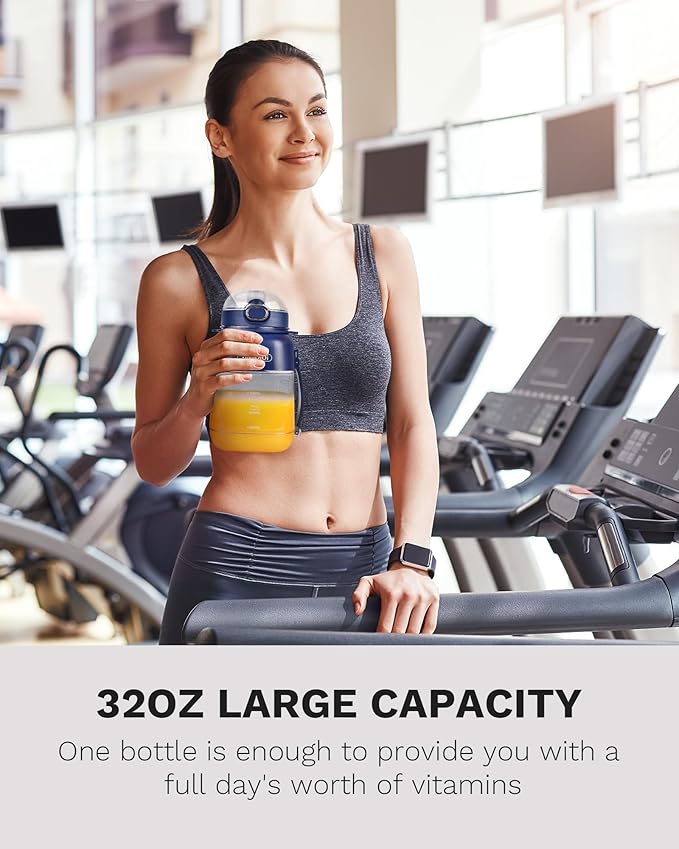 - [Large Capacity] With a 32 oz (1000 ml) capacity, this blender is perfect for making large batches of your favorite drinks. It's an ideal portable juicer for travel, gym sessions, picnics, camping, or home use