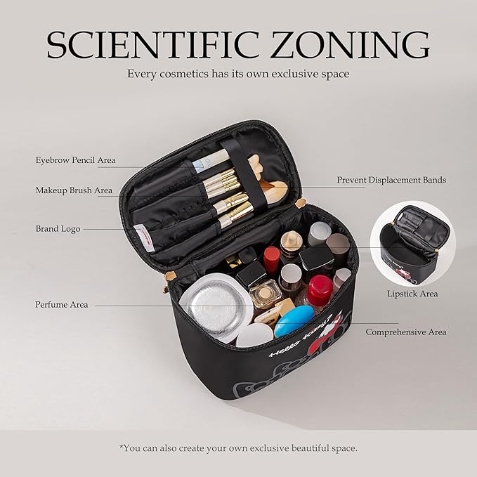 - Separate Brushes Compartment - waterproof Travel makeup bag comes with a separate space to hold your brushes and protect them from dust.There is an independent side pocket inside for lipstick, small perfume, jewelry, etc, which is very practical. Good travel makeup bags for women
