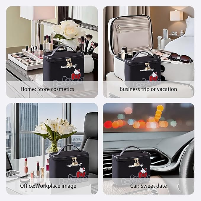 - Appropriate size -8.7 x 4.7 x 6.3 inches. The lightweight design of the women's makeup bag makes it suitable for luggage and easy to carry. Makeup anytime, anywhere. Cute metal cat head with double-sided zipper for easy access