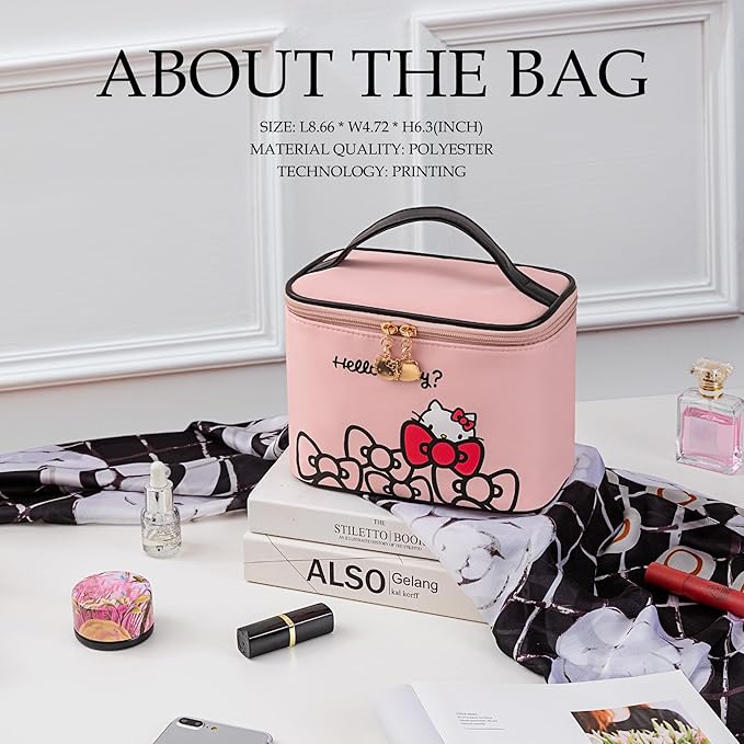 - Appropriate size -8.7 x 4.7 x 6.3 inches. The lightweight design of the women's makeup bag makes it suitable for luggage and easy to carry. Makeup anytime, anywhere. Cute metal cat head with double-sided zipper for easy access