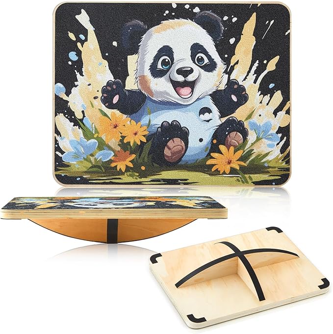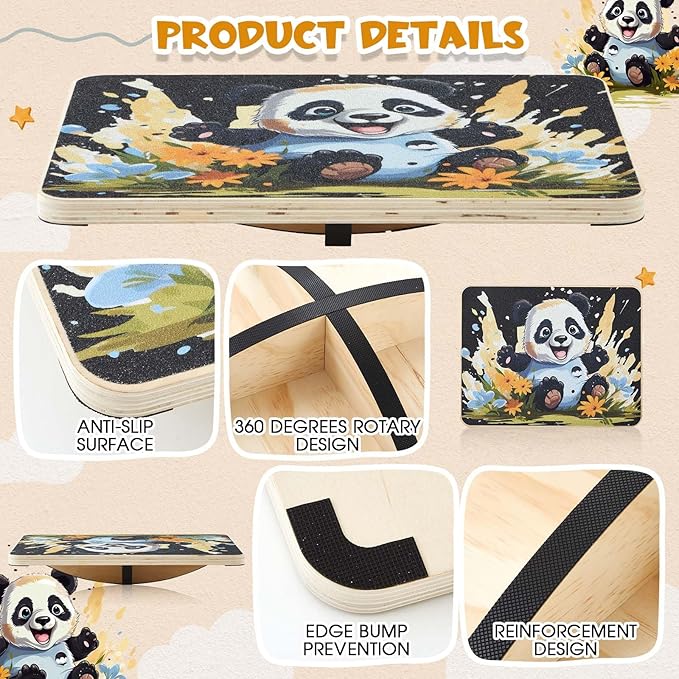- Interesting Design: the kid balance board adopts a cute panda pattern design, which attracts children to play indoors or outdoors while improving balance, stability and core coordination, etc