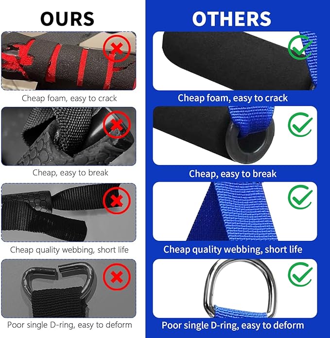- 【Top Quality Heavy Duty Fitness Handle】- Super strong heavy duty construction, these yoga exercise pull handles are manufactured to be super strong and ultra durable. Extra strong and durable handles with industrial strength core and solid nylon webbing for flexibility;