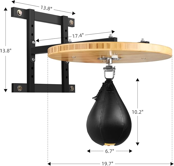 - Package Includes: 1 wall-mount frame, 2 steel tube, 1 Hardwood platform, 1 Speed bag bearing swivel, 1 speed bag(10‘’x7"), 1 Hand pump with Air needle, Screws
