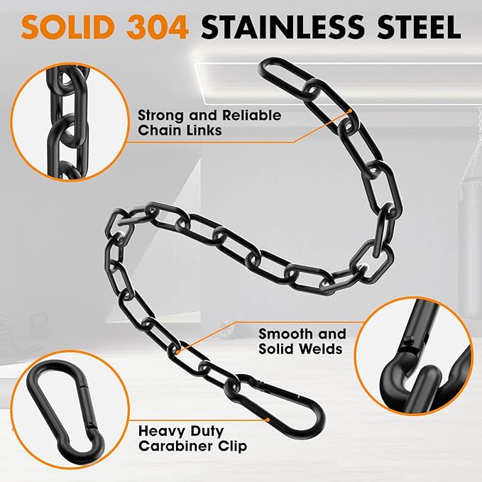 - Safety Design: Each link of the steel weight chain has been strictly processed and polished, with smooth surface. The links are all enclosed structures that will not accidentally break, providing strong safety and a maximum load capacity of 300 lbs