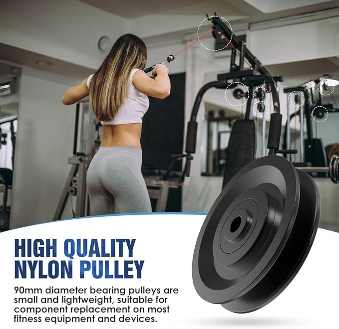 - Sturdy and Practical: The fitness pulley is made of brand new nylon material and bearings, the material is precision machined for safety, robust and wear resistance, it is a great replacement for gym equipment accessories