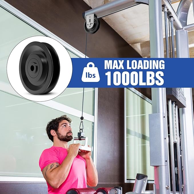 - Stable Structure: The cable pulley attchment is made of 6202zz metal bearing inside, with removable cover at the bearing, which is waterproof, rust and anti-pollution. The pulley system runs smoothly and quietly and rolls smoothly. It has a maximum load of 1000 lbs