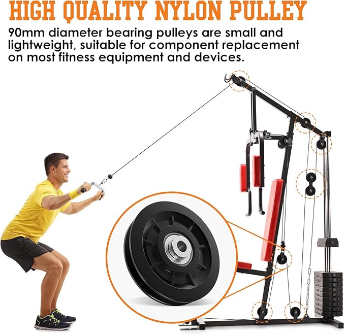 • Multiple Uses: The nylon gym pulley with bearing can be used as a replacement accessory for home gym equipment, gym tension ropes, DIY home projects, clotheslines, cable machines, garage door pulley lifting systems and more