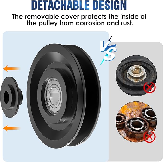 • Stable Structure: The cable pulley attchment is made of 6202zz metal bearing inside, with removable cover at the bearing, which is waterproof, rust and anti-pollution. The pulley system runs smoothly and quietly and rolls smoothly. It has a maximum load of 1000 lbs
