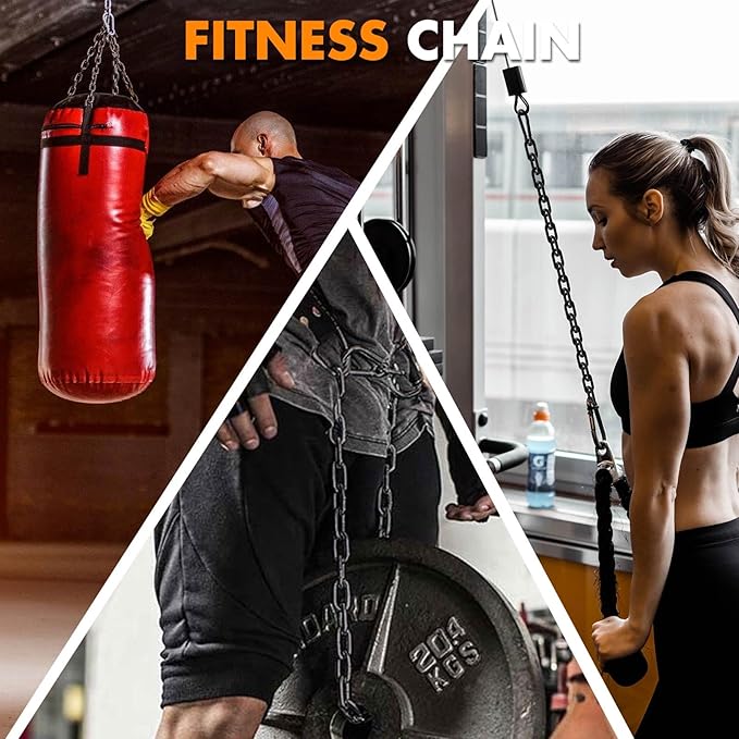 - Multi-Functionality:As a cable extension accessory for workout machine, the steel chain can be used for a variety of training programs, such as pull downs, curls, squats, hard pulls, bench presses, etc. It is suitable for use in strength racks, pulley systems, and weight lifting equipment, providing trainers with more diversified training choices. It can also be used for sandbags, locking gates or bicycles, fences and other