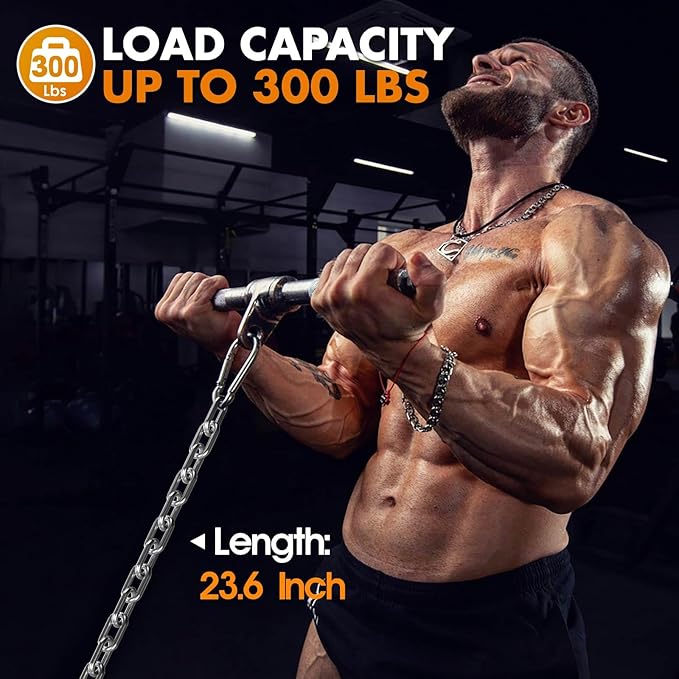 • Product Size: The workout chain thickness is 0.2 inch(5 mm), length is 23-10/16"(600 mm), carabiner length is 2-6/16"(60 mm)