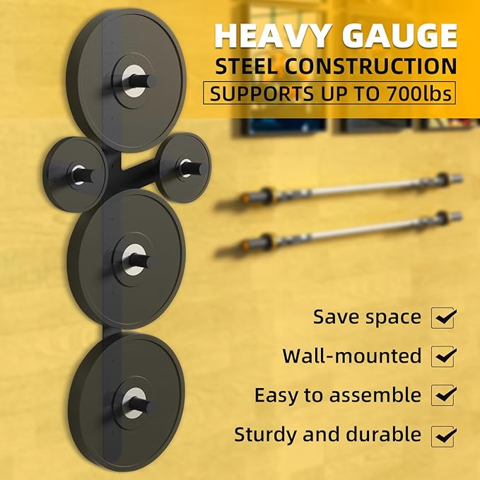 - HEAVY DUTY STEEL - Our weight plate rack is expertly crafted from premium-quality steel, with an impressive load capacity of 700 lbs. Elevate your home gym experience with a storage solution combining rugged performance and peace of mind!