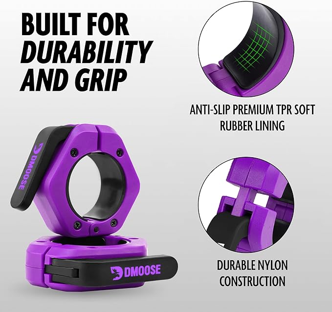 - πππππππ ππππππππππππ ππππ ππππ-ππππ ππππ: Built for durability and reliability, DMoose Barbell Collar is constructed with high-quality nylon polyamide and premium TPR soft rubber lining. The anti-slip grip of the Barbell Clamp ensures your weights stay in place, providing a safe and effective lifting experience. Trust in the robust build to withstand the toughest workouts and last for years, delivering consistent performance.