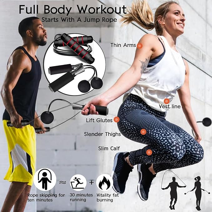 - 【Sports Fitness】- Jump rope is a great calorie-burner. Improves your balance and quickness/coordination by making your mind focus on your feet for sustained periods of time, improving the muscle tension of your whole body