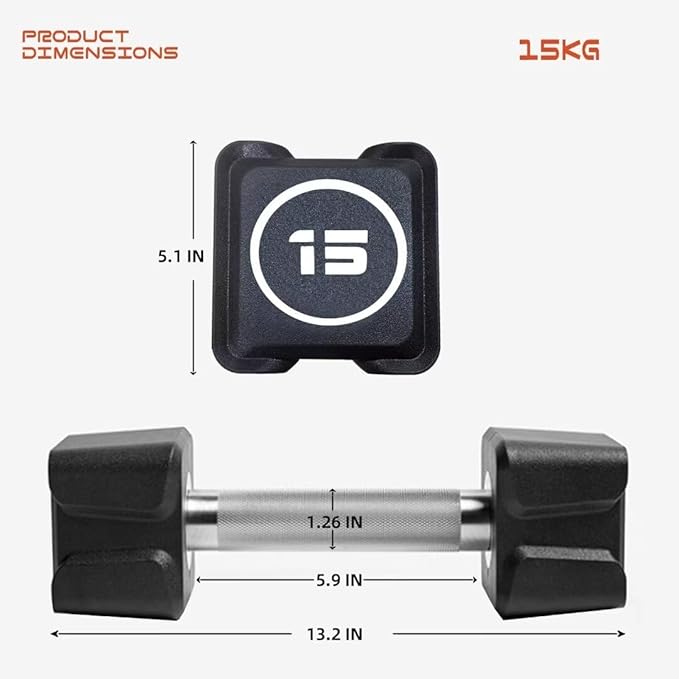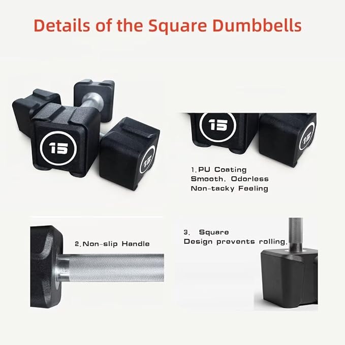 - SQUARE SHAPE:When you put the dumbbell down to stop exercising, the square dumbbell head is not easy to roll or slip off.