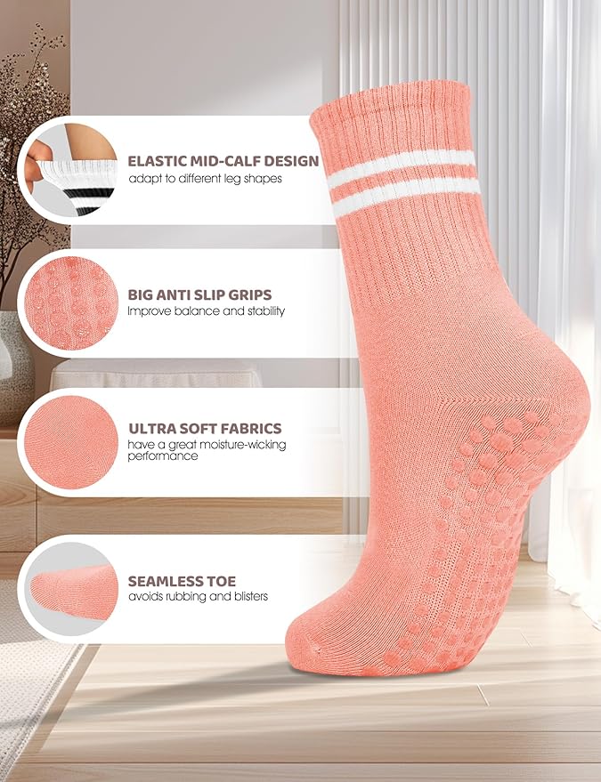 - MULTIFUNCTIONAL - This non skid socks are not only suitable for home or daily wear, but also can be used as sports socks when doing indoor sports such as pilates, yoga, ballet, trampoline, jumping rope and so on. In addition, this sticky socks can also be used as hospital socks, it is a good choice for the elderly, pregnant women to use, which can make him them safer when walking on slippery floors or stairs.