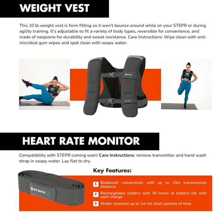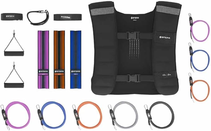 - Wear the weighted vest on one of our STEPR stair master machines to level up your home workout. The STEPR step fitness machines also feature 11 anchor points to attach the resistance bands tube set.