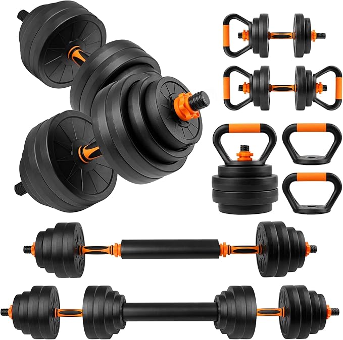 - 【WHAT YOU GET】NOTE: If there is a problem with the nut you received, please contact us in time and we will send you a new nut. Package includes 4 x 0.75kg/1.65lbs Dumbbell plates, 4 x 1.25kg/2.75lbs Dumbbell plates,8 x 2.5kg/5.5lbs Dumbbell plates, 1 x Connecting Rod, 2 x Dmbbell Bar, 2 x Kettlebell Handle, 1 x Kettlebell Base Rod, 4 x Fixed nut. If you have any questions about the products, please contact our customer service team