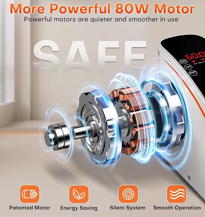 - More Powerful Motor - Quiet And Smooth Reason: This mini elliptical exercise machine is equipped with a patented, more powerful 80W ultra-quiet motor is 30% higher than other products. It remains smooth and nearly silent (<15 dB) performance even under high loads and high speeds, so that you can use it during the day or night, at working, while watching TV or reading without being distracted or disturbing others