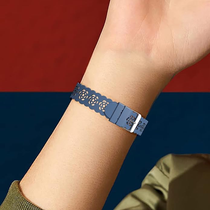 - NEWEST UNIQUE ROSE HOLLOWED-OUT DESIGN: The rose cutouts go along the whole silicone sport band, make it extremely pretty and fashionable, highlight your fitness tracker. Hollowed-out watch strap makes your wrist breathe freely and feel comfortable all day.