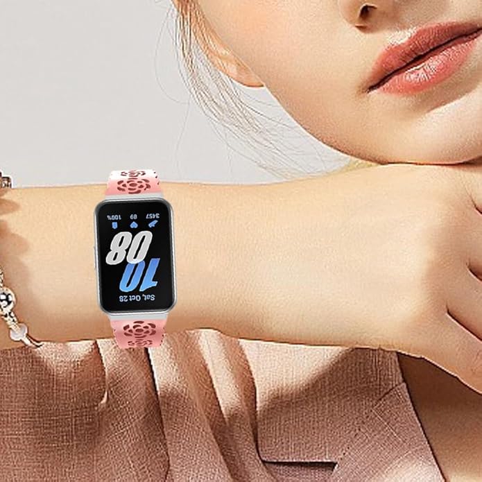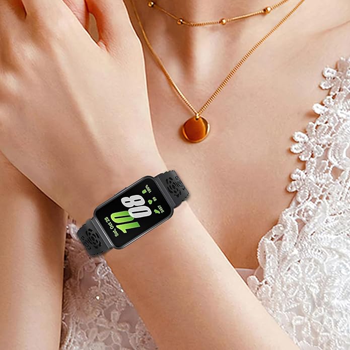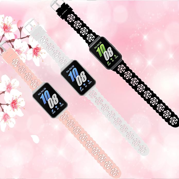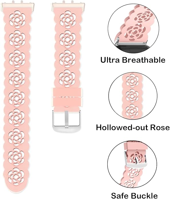 - NEWEST UNIQUE ROSE HOLLOWED-OUT DESIGN: The rose cutouts go along the whole silicone sport band, make it extremely pretty and fashionable, highlight your fitness tracker. Hollowed-out watch strap makes your wrist breathe freely and feel comfortable all day.