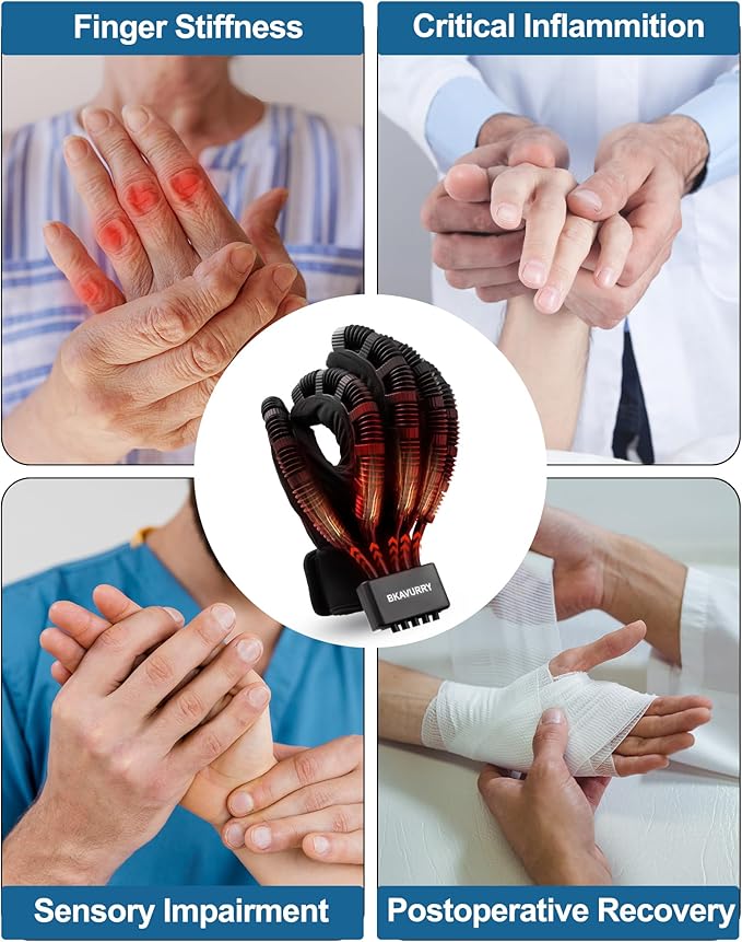 • 【Rehabilitation Robot Glove】This hand rehabilitation Equipment has a significant improvement effect on muscle weakness, finger stiffness and pain.It is suitable for hand training for patients with stroke, hemiplegia, cerebral palsy, nerve damage, etc.The new heating function can promote blood circulation, enhance muscle tension and improve training effect.