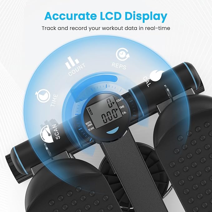 Mini Steppers for Exercise at Home, Stair Stepper Machine with Resistance Bands, 330 lbs Capacity, and LCD Monitor for Home Workout, Full Body Cardio and Walking