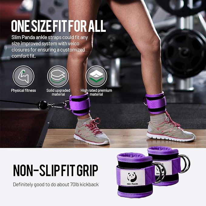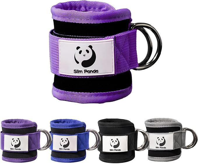 Slim Panda Ankle Strap for Cable Machine,Ankle Cuff for Kickbacks, Booty Hip Abductors,Glute Workouts, Leg Extensions, Curls for Men and Women, Adjustable with Double D-Rings