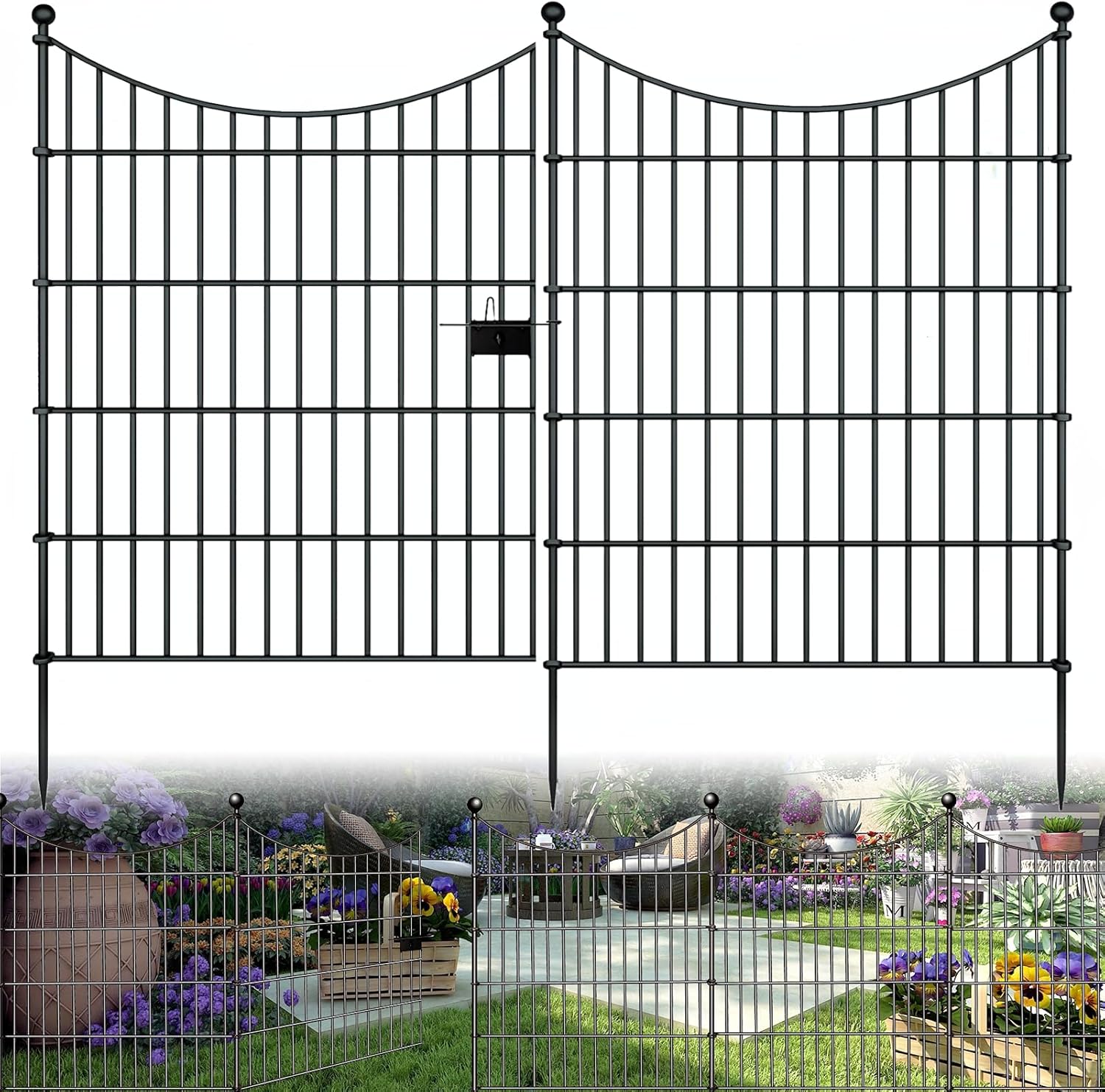 • 【Secure and Sturdy Construction】Rest assured with our Metal Fencing's robust construction. Built with metal and spear-top pickets, it forms a formidable barrier against intruders and withstands harsh weather conditions, ensuring year-round protection for your garden sanctuary