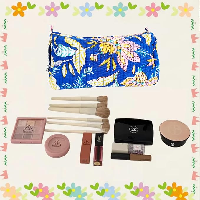 - Cute Makeup Bag: The Quilted Cotton Makeup Bag Is Made Of High-Quality Cotton, Which Is Lightweight, Portable And Good In Texture, Durable To Use. This Cute Floral Cosmetic Bag Features A Floral Pattern Design, Fashionable And Skin-Friendly, Comfortable To The Touch. The Stylish Design Makes These Makeup Bags A Fashionable Accessory, Suitable For Both Your Everyday Makeup Routine And Special Occasions, Allowing You To Showcase Your Personal Style.
