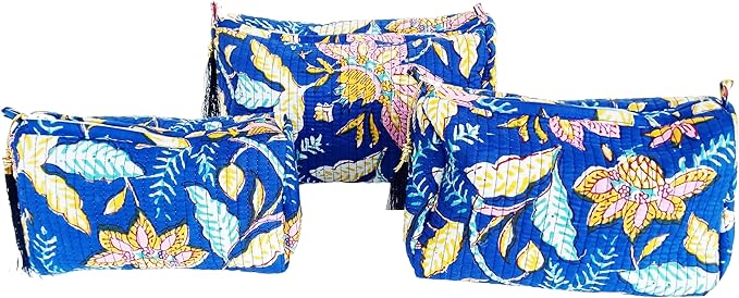 Rastogi Handicrafts Cosmetic Bags Set, 3 Piece Make Up Organizer Bag Storage Bags With Zipper Closure (3, Blue, Design-1)