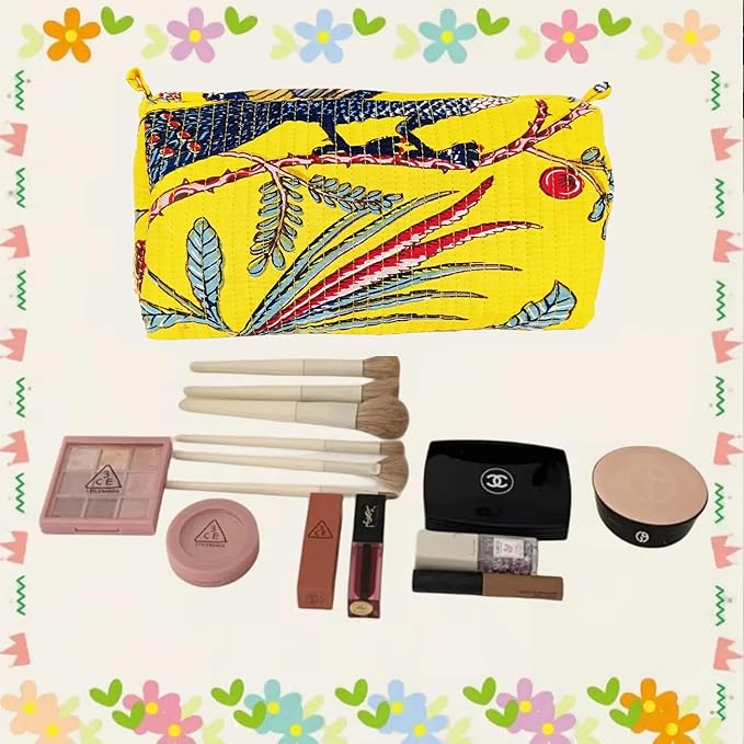 - Cute Makeup Bag: The Quilted Cotton Makeup Bag Is Made Of High-Quality Cotton, Which Is Lightweight, Portable And Good In Texture, Durable To Use. This Cute Floral Cosmetic Bag Features A Floral Pattern Design, Fashionable And Skin-Friendly, Comfortable To The Touch. The Stylish Design Makes These Makeup Bags A Fashionable Accessory, Suitable For Both Your Everyday Makeup Routine And Special Occasions, Allowing You To Showcase Your Personal Style.