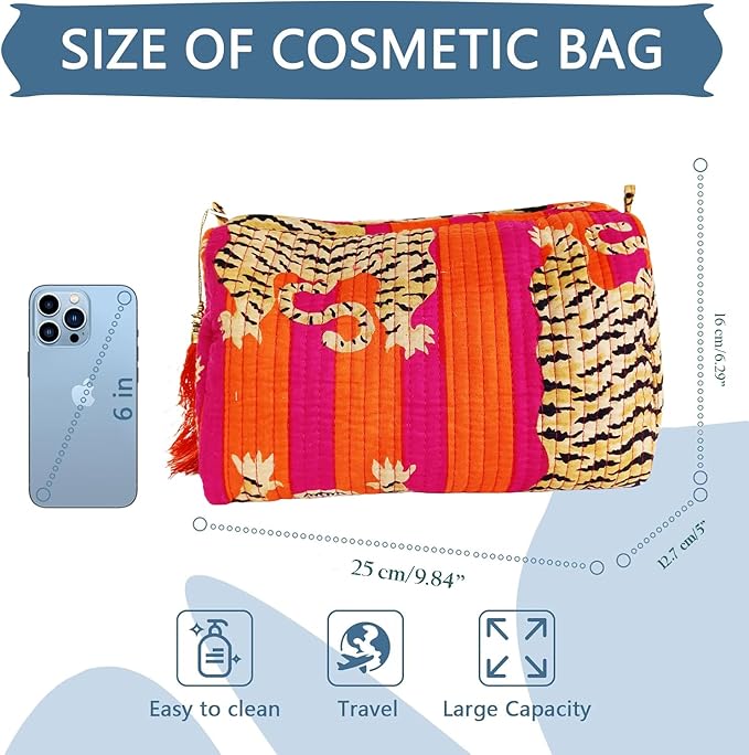 - Material: This Travel Cosmetic Bag Is Made Of Cotton Material, Which Is Easy To Clean, Has Been Well- Stitched And Reinforced At All Stress Points. The Zipper Is Made Of Which Can Make The Makeup Bag Easier To Pull And Align Neatly.