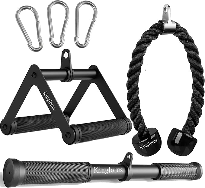 Kinglotus Cable Machine Attachment Straight Bar Tricep Rope Double D Handle for Home Gym Weight Equipment Accessories.