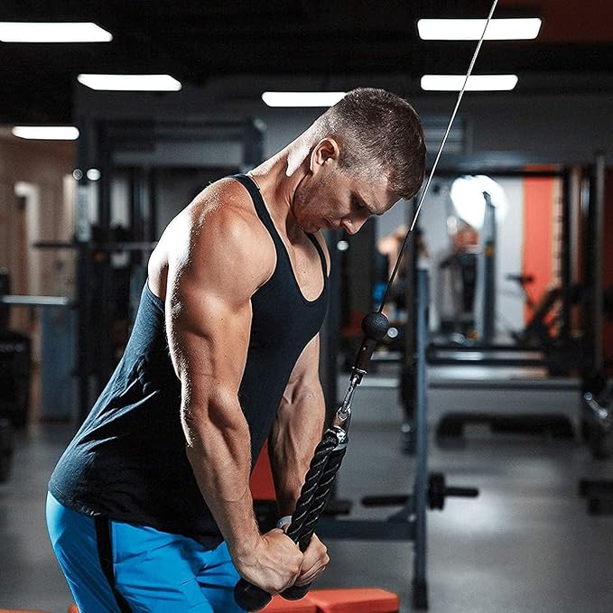 - [Tricep Pull Down Rope] Made of heavy-duty black braided nylon rope with solid rubber ends and chrome-plated swivel attachments, provides flexible movement when you perform a pull down tricep workout with a weight capacity of up to 850 lbs.