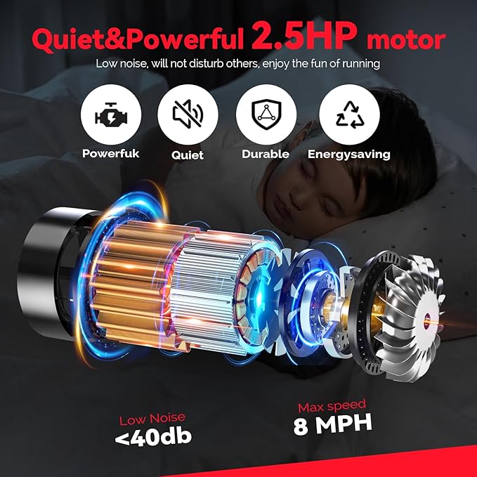 - 【Quiet and powerful motor】 You can use this treadmill without any worries. Equipped with a powerful 2.5 horsepower motor. A smooth and quiet motor ensures uninterrupted work, sports or online meetings