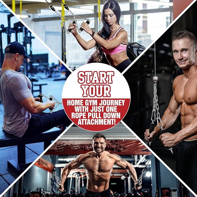 Tricep Rope LAT Pull Down Attachment, Gym Handle for Cable, Gym LAT Pulldown Cable Machine Pulley System Accessory, DIY Workout Equipment for Home Gym