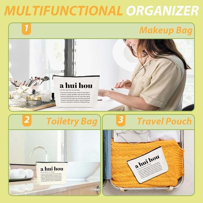 A Hui Hou Definition Inspirational Makeup Bag Hawaii Cosmetic Bag Hawaiian Gifts Hawaiian souvenirs Thank You Gifts for Women Female Grandma Mom Sister Bestie Travel Toiletry Bag Christmas Birthday