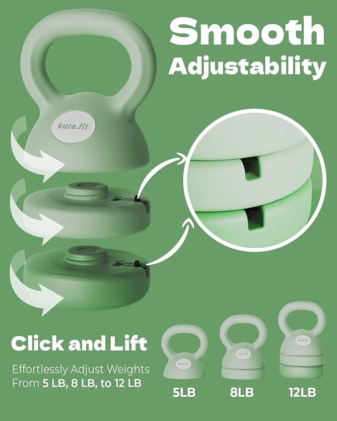 - 【Adjustable Weight】Tailor your training intensity with our adjustable kettlebell, which shifts effortlessly between 5, 8, and 12 lbs. This feature allows you to progress as your strength improves, making it perfect for dynamic exercises like kettlebell swings, squats, and more.