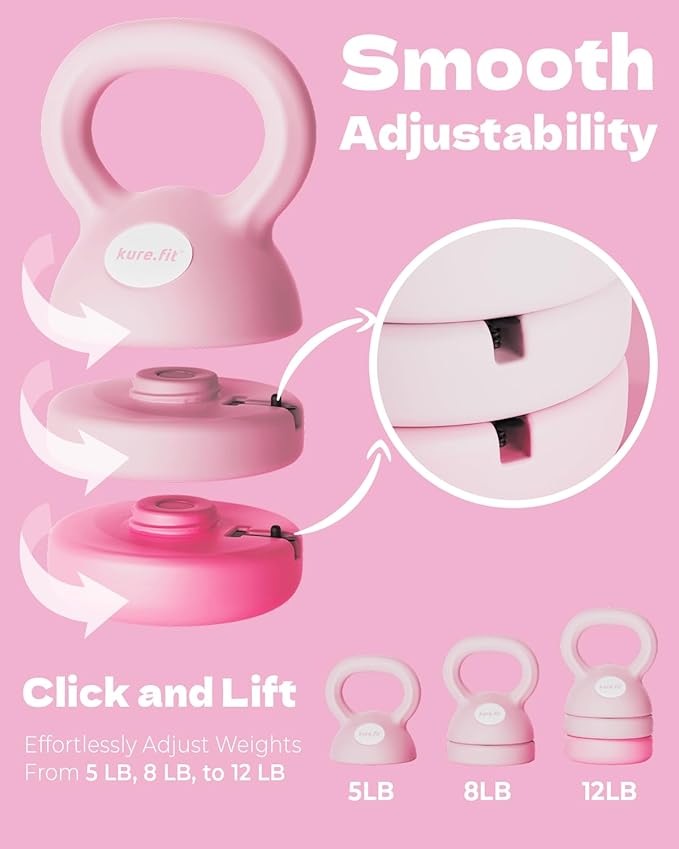 Adjustable Kettlebell | 5 lb - 12 lb | Kettlebell Weights Set for Home Gym | Full-Body Workouts, Strength Training, Weight Loss | Fabric Booty Band | Beginners & Women
