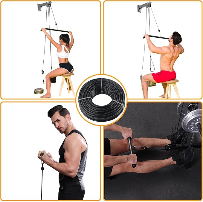 - 【Wide Applications】The replacement cable can be widely used in home gym, indoor or outdoor sports.Suitable for training triceps, biceps, back muscles, deltoids with pulley systems. You can cut it to the length you need as a replacement of pulley cable.