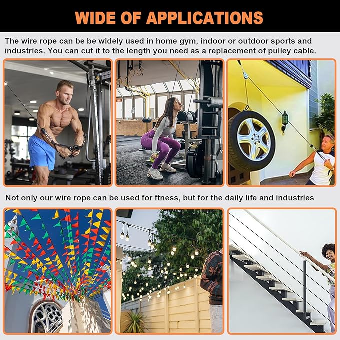 - 【Wide of Applications】The replacement cable can be widely used in home gym, indoor or outdoor sports and industries. You can cut it to the length you need as a replacement of pulley cable. And use it as the traction rope of the car.