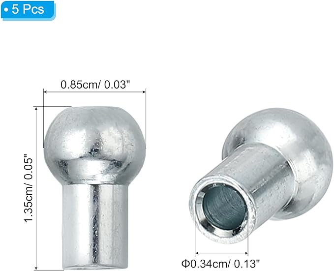 - Material: Galvanizing; Color: Silver; Hole Diameter: 0.34cm/ 0.13 inch; Total Size: 1.35x0.85cm/0.05x0.03 inch (L*W); Packing List:5 x Gym Cable Ball Stopper