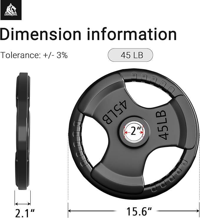 LIONSCOOL 2-Inch Rubber Olympic Grip Weight Plates for Strength Training, Weightlifting, Solid Cast Iron Plate for Barbell in Single/Pair/Set for Home & Gym (2.5-45LB), One Year Warranty