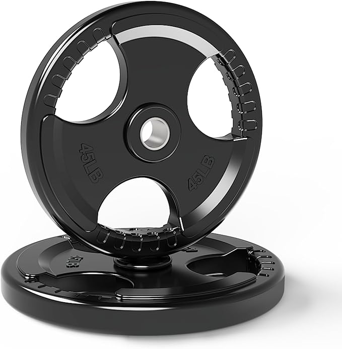 - Comfortable and Convenient: Each plate has 3 openings with strips on them for easy and secure grip when loading and unloading the weights. Labeled in LB for easy recognition.