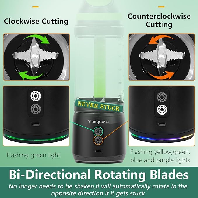 - SMART PREVENT JAMMING: The first portable smoothie blender with blades that rotate in both directions,the blending will be more powerful and effective,you will get more delicate smoothie shakes than ever before,don't worry about the blades getting jammed