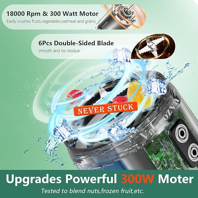 - WATERPROOF & EASY TO CLEAN: The Vaeqozva small smoothie blender is IP67 waterproof,double-click to turn on the self-cleaning mode,or just rinse mini blender with water,which makes it very easy to clean. Tips:Don't immerse the portable blender in water