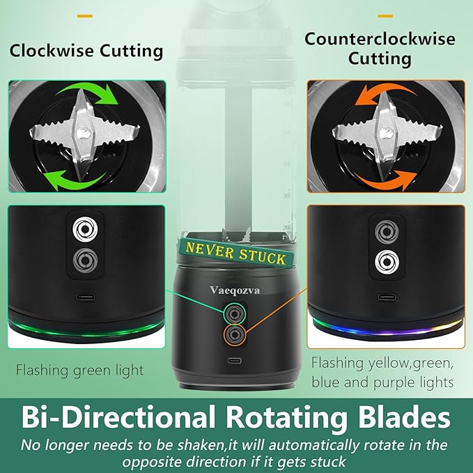 - SMART PREVENT JAMMING: The first portable smoothie blender with blades that rotate in both directions,the blending will be more powerful and effective,you will get more delicate smoothie shakes than ever before,don't worry about the blades getting jammed